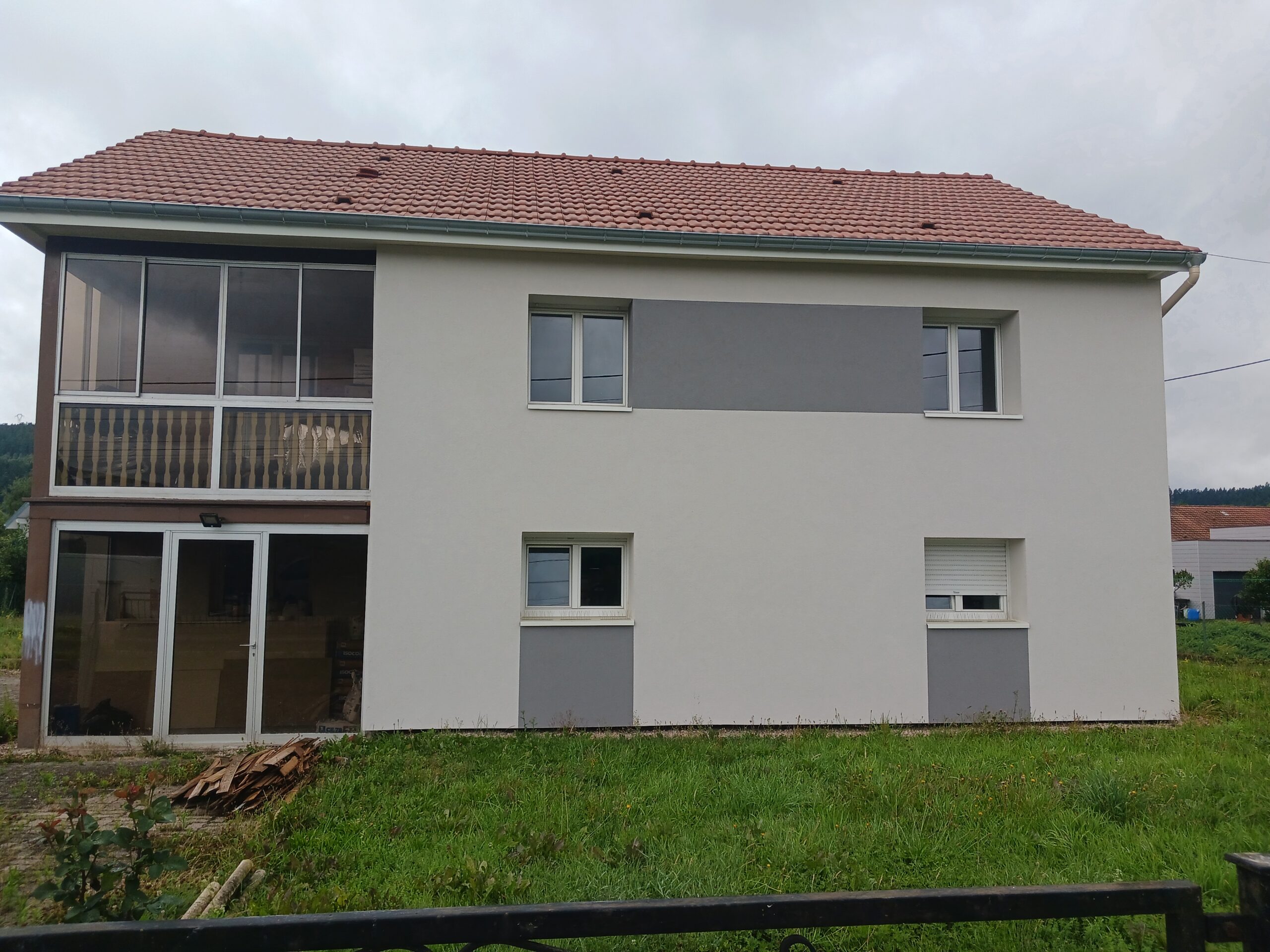 Pour renforcer la performance énergétique, la maison a bénéficié d’une ITE, suivie d’une finition en enduit de façade :